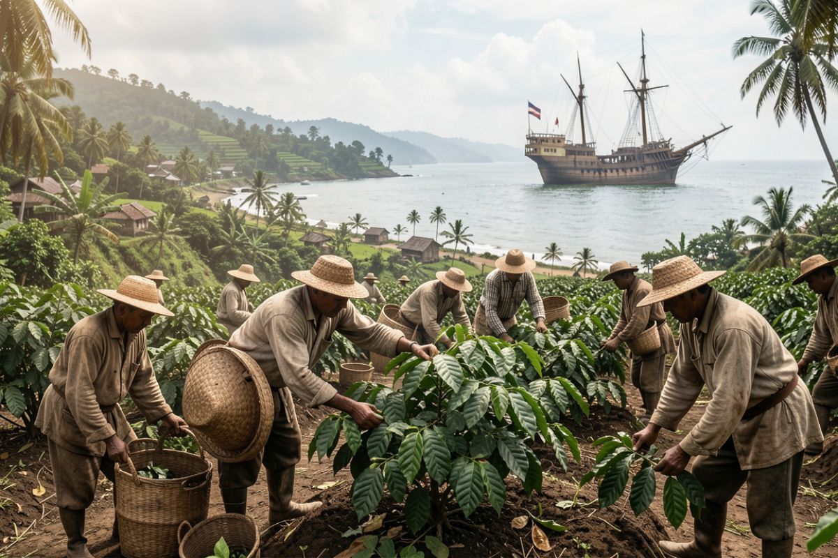 The Dutch were the first Europeans to successfully cultivate coffee outside Yemen, establishing a plantation on the island of Java (in what is now Indonesia) in 1696. From a single plant smuggled out of a Yemeni port — the monopoly had finally been broken — they built a coffee empire that made Amsterdam the center of the global coffee trade and established the word "Java" as a synonym for coffee in the English language.